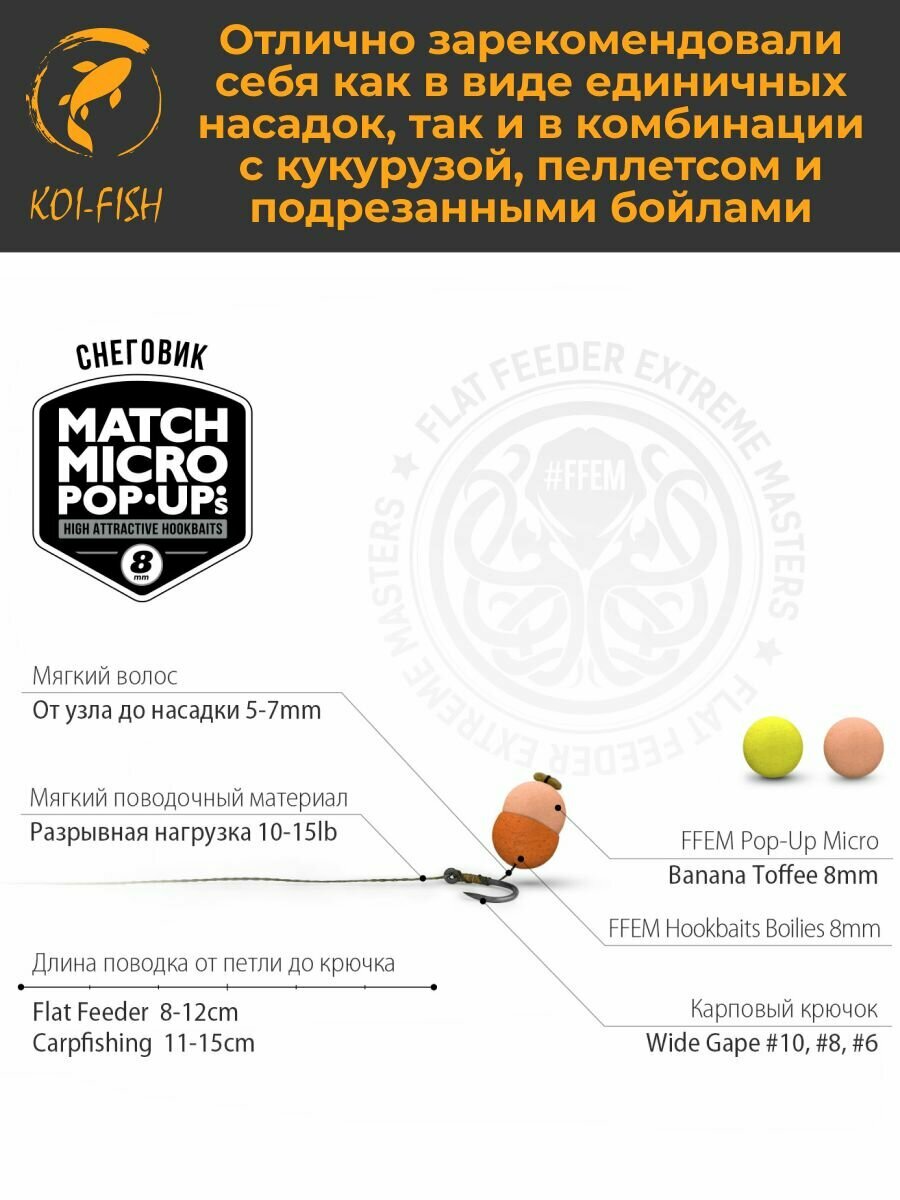 Отзывы на Плавающие бойлы Match Micro POP-UP 8 мм Banana Toffee Банановая ириска, насадочные поп-ап / FFEM Pop-Up Micro 8mm, Банан