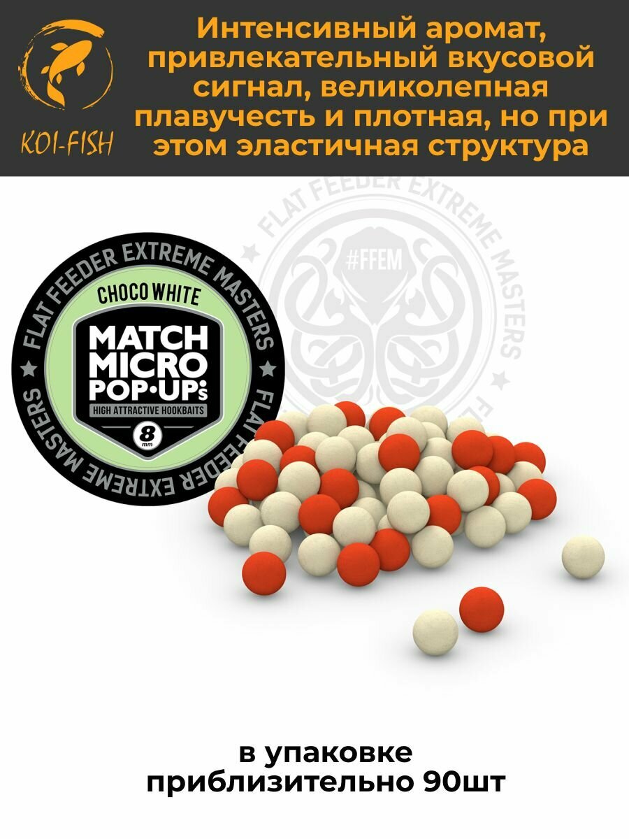 Плавающие бойлы Match Micro POP-UP 8 мм Choco White Шоколад, насадочные поп-ап / FFEM Pop-Up Micro 8mm информация: