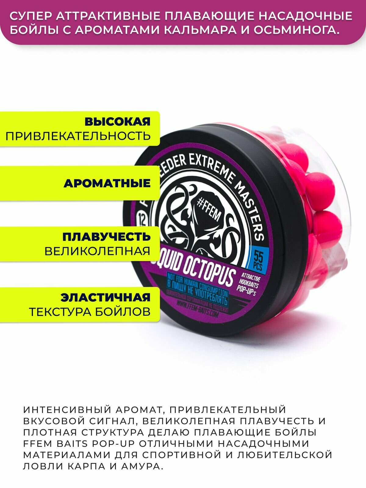 Отзывы на Плавающие бойлы FFEM Pop-Up 12mm Squid Octopus (кальмар и осьминог)