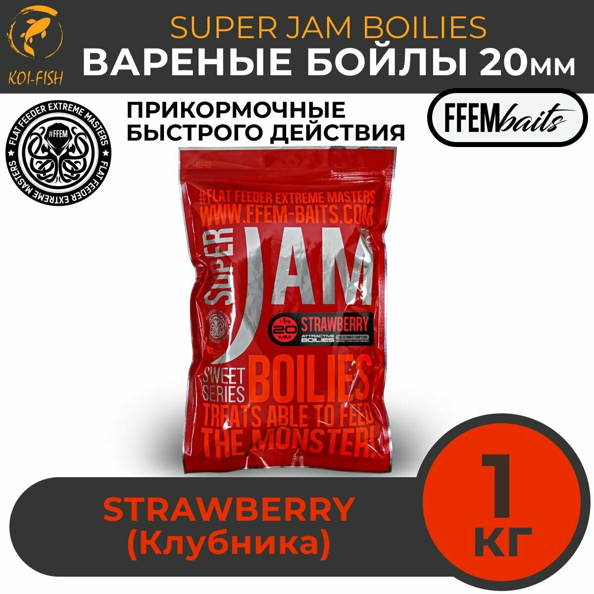Бойлы варёные FFEM SUPER JAM STRAWBERRY клубника , 20 мм, 1 кг , вареные со специями, Прикормка для карпа информация: