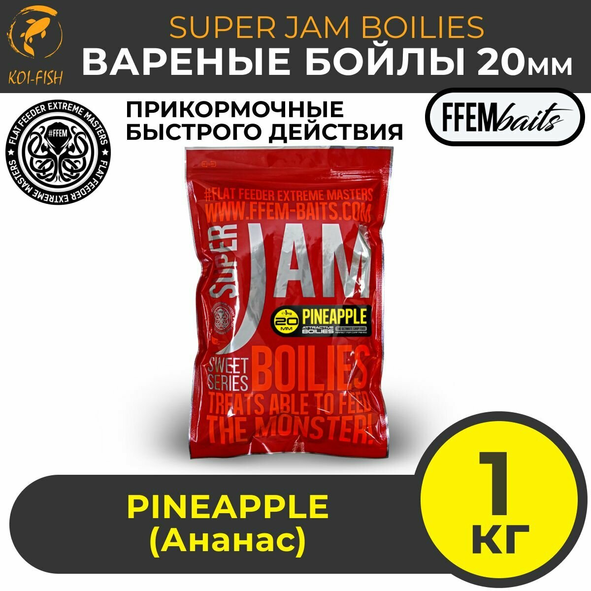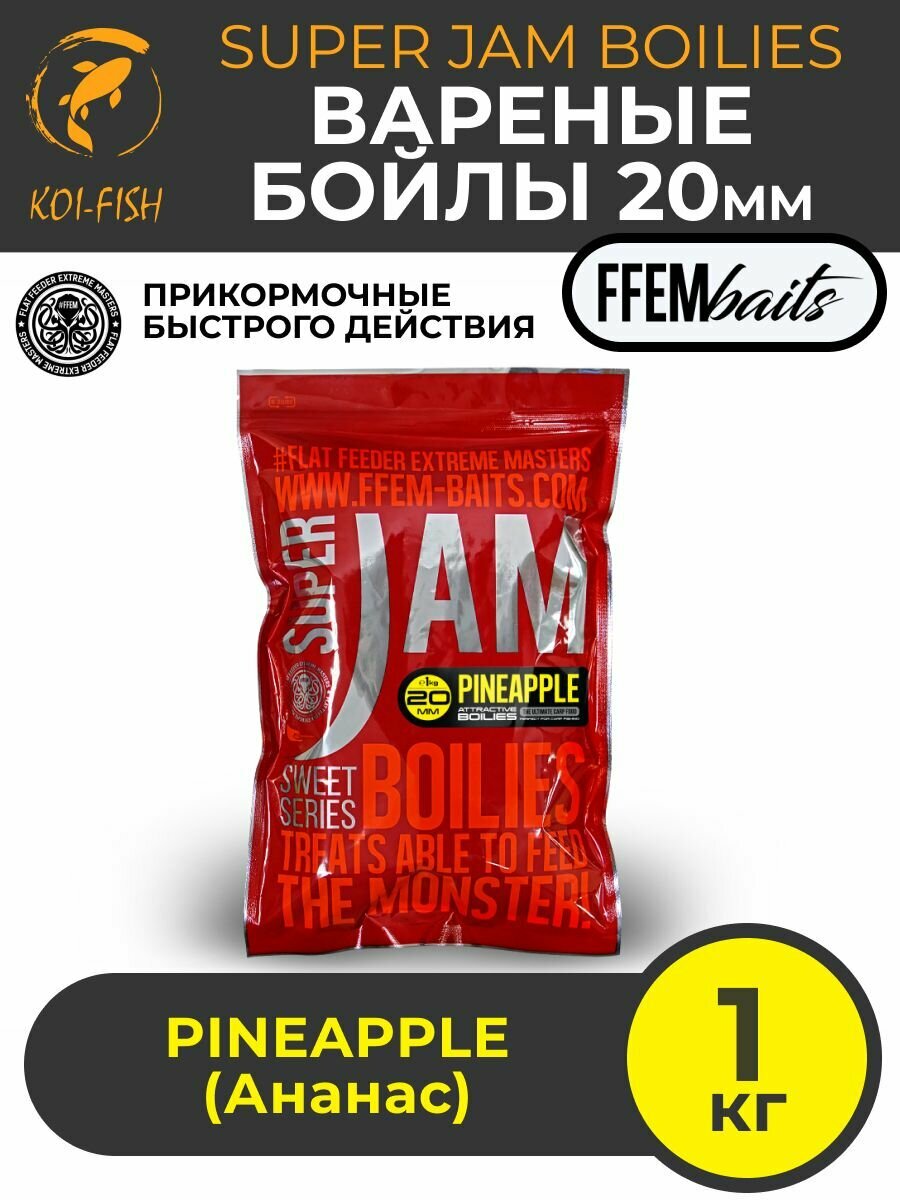 Бойлы варёные FFEM SUPER JAM PINEAPPLE ананас , 20 мм, 1 кг, вареные со специями, Прикормка для карпа информация: