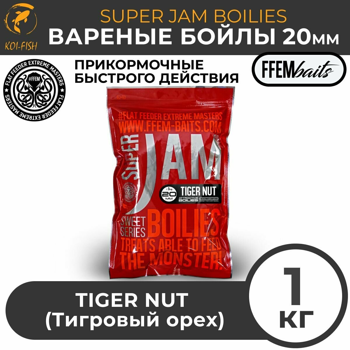 Бойлы варёные FFEM SUPER JAM TIGER NUT тигровый орех , 20 мм, 1 кг, вареные со специями, Прикормка для карпа информация: