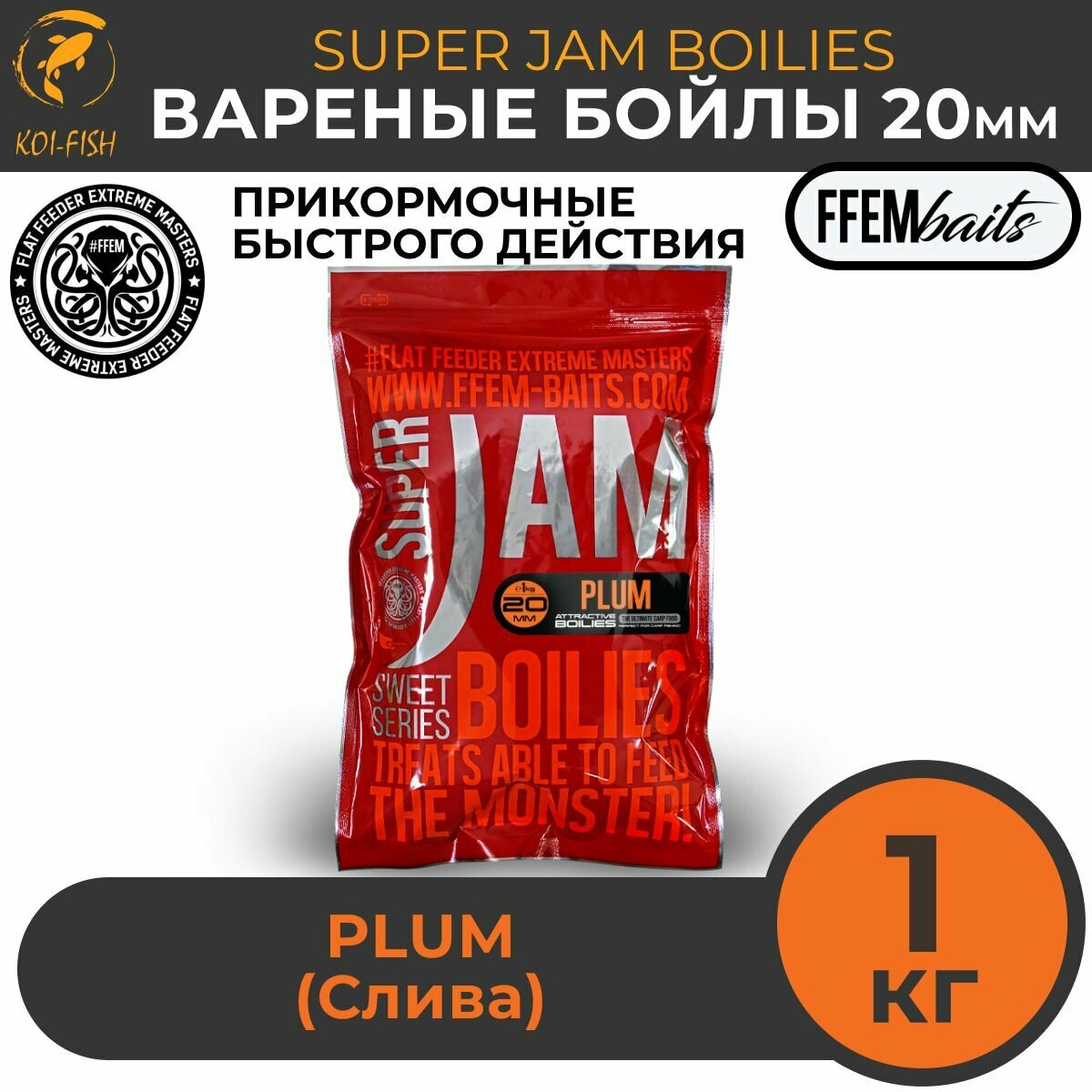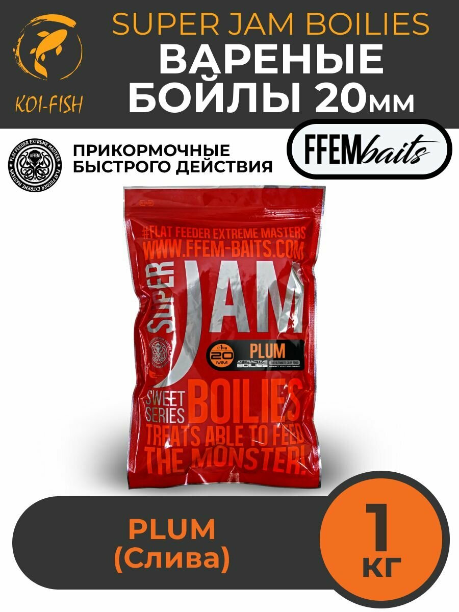 Бойлы варёные FFEM SUPER JAM PLUM слива , 20 мм, 1 кг, вареные со специями, Прикормка для карпа информация: