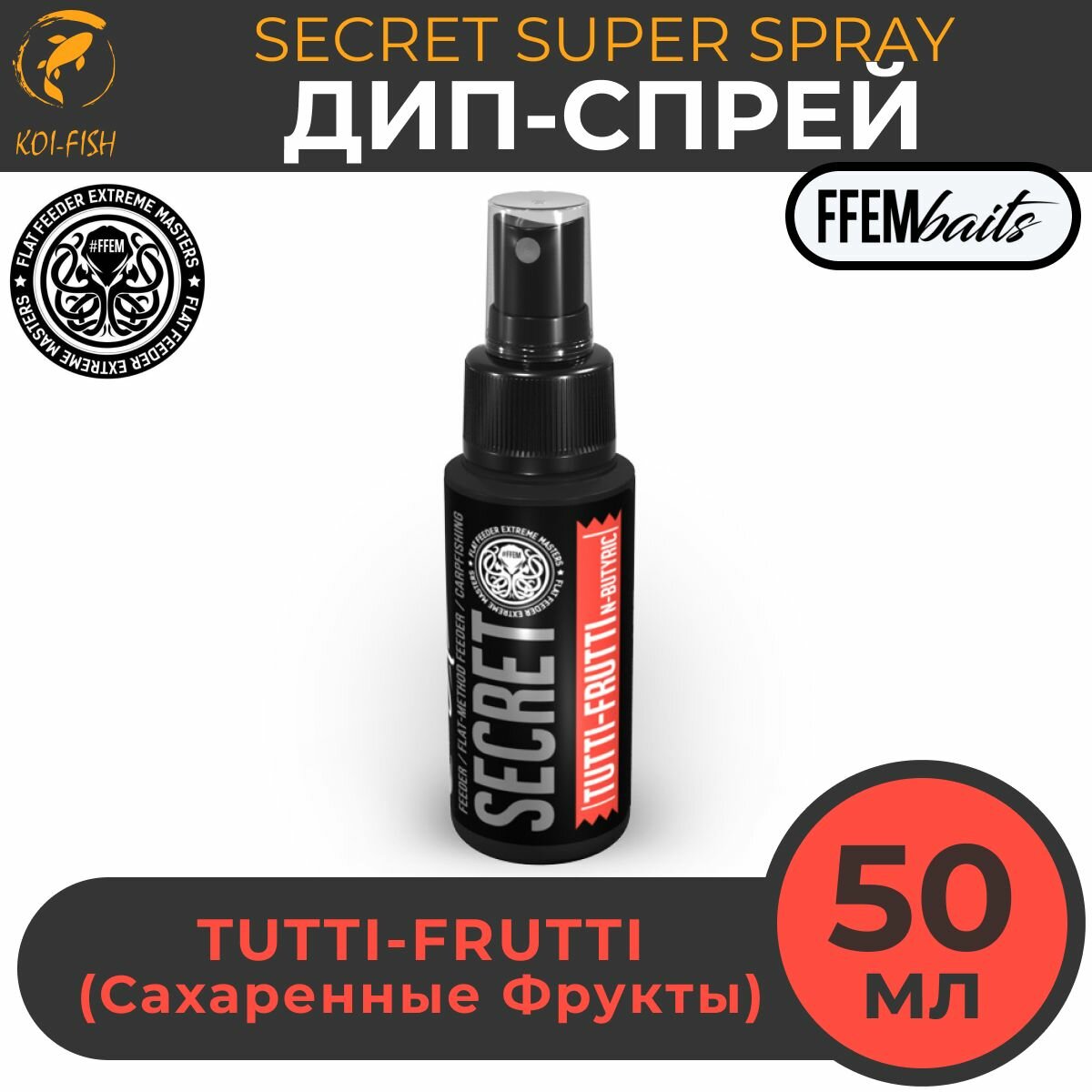 10 цен на ДИП Супер Спрей FFEM Secret Super Spray Tutti-Frutti 50ml Тутти-фрутти 50мл / мощный ароматизатор DIP ликвид для насадок и бойлов, бустер