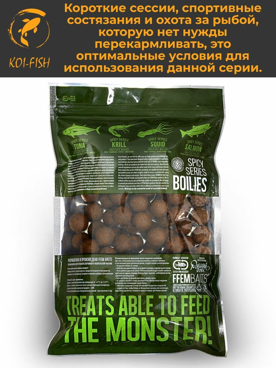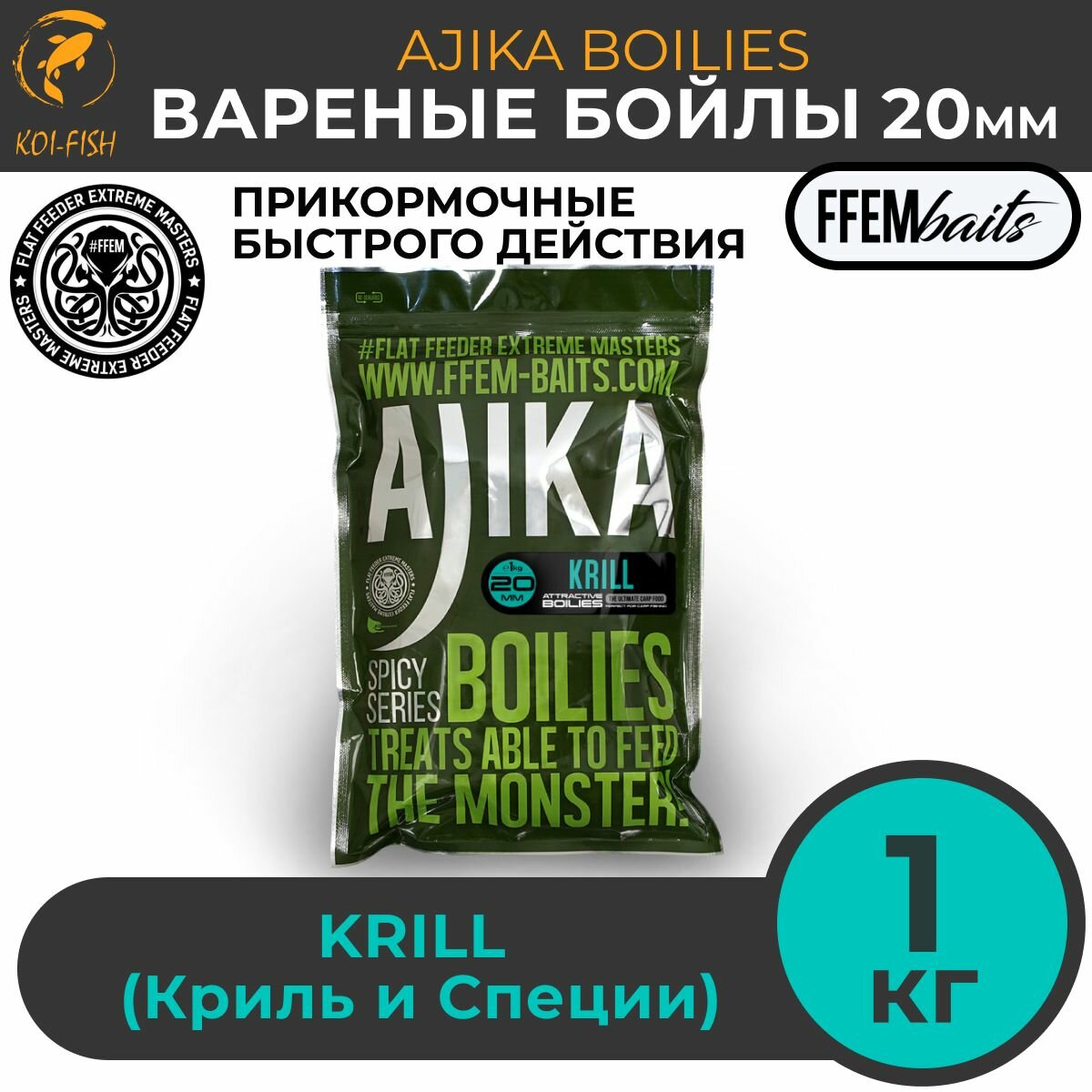 Бойлы варёные FFEM AJIKA KRILL криль , 20 мм, 1 кг, вареные со специями, Прикормка для карпа информация: