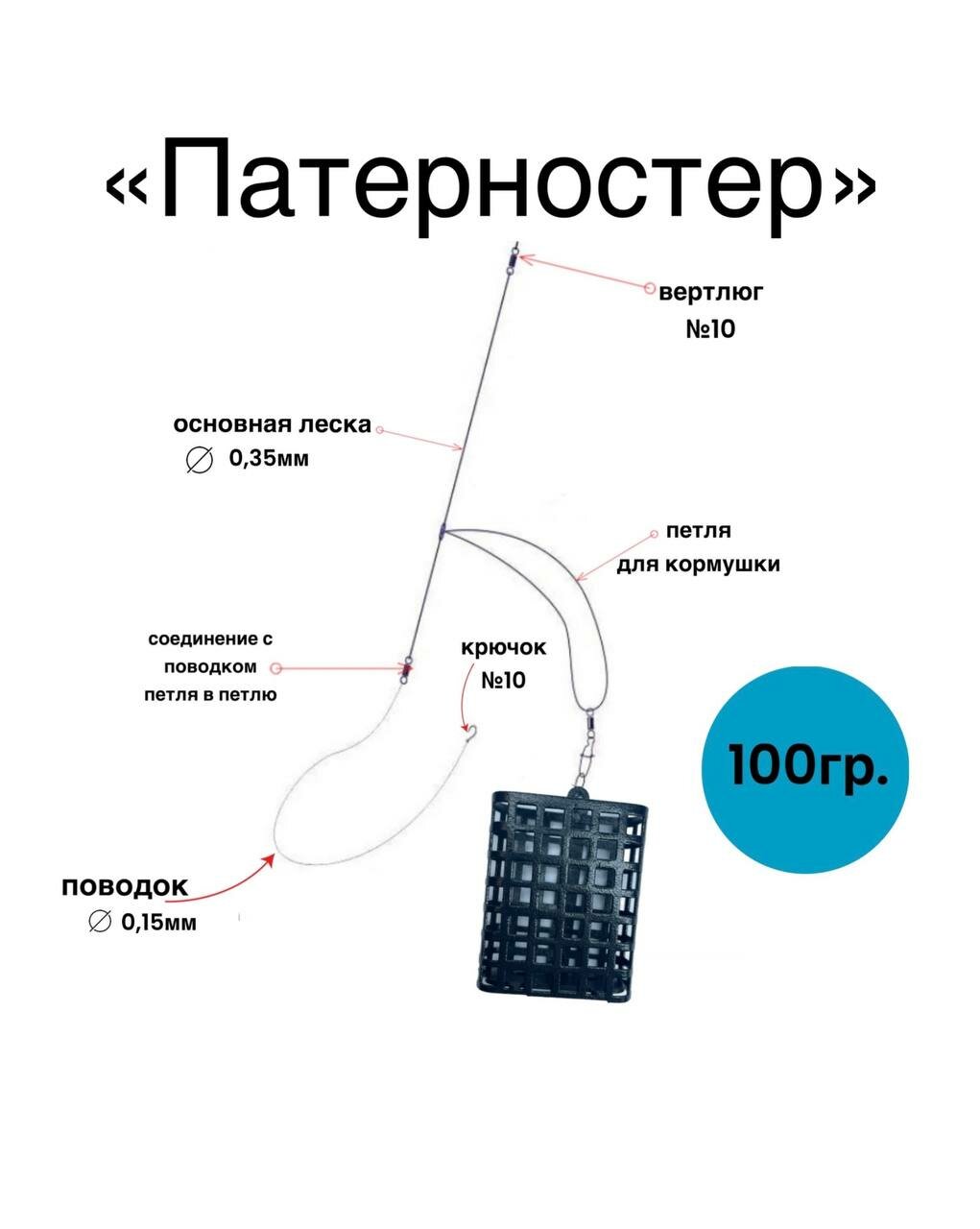Фидерный монтаж оснастка Патерностер PRO кормушка ручная работа 100гр информация: