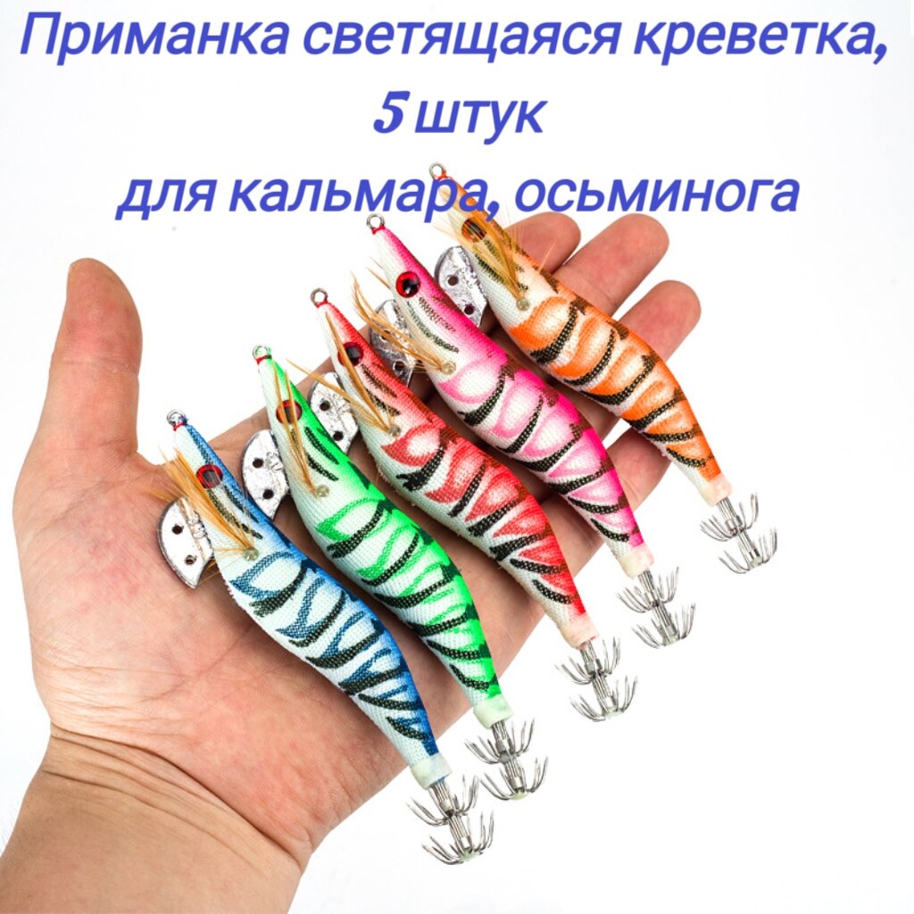 Отзывы на Приманка в виде креветки для рыбалки, светящийся воблер, для ловли кальмаров, омаров, осьминогов набор 5 штук. 10см, 11г