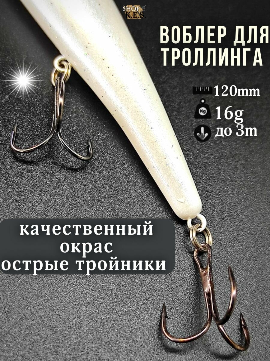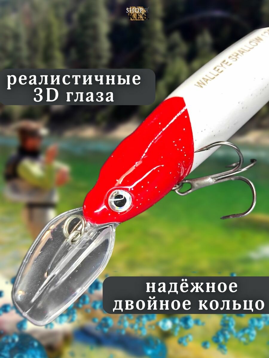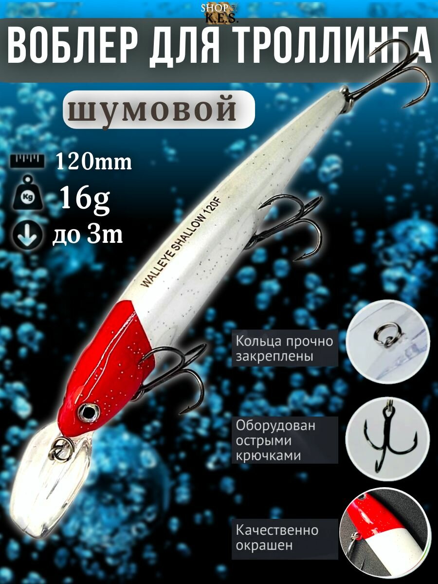 10 цен на Воблер Бандит Минноу красноголовый 120мм 16гр с заглублением 2-3м / Приманка воблер для троллинга на щуку, судака