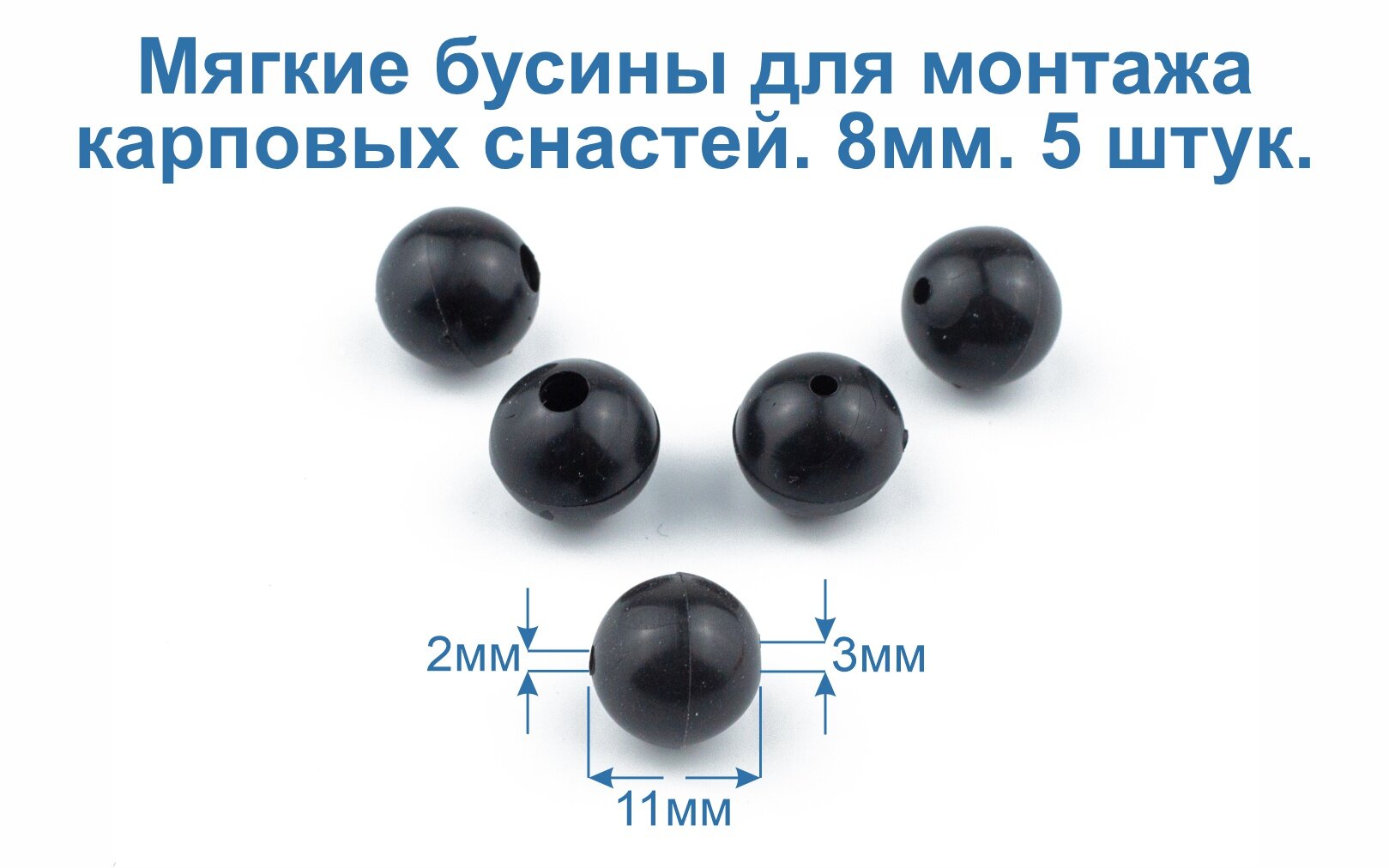Бусины мягкие для монтажа карповых (фидерных) рыболовных снастей. 11мм, 2-3мм, 5шт. информация: