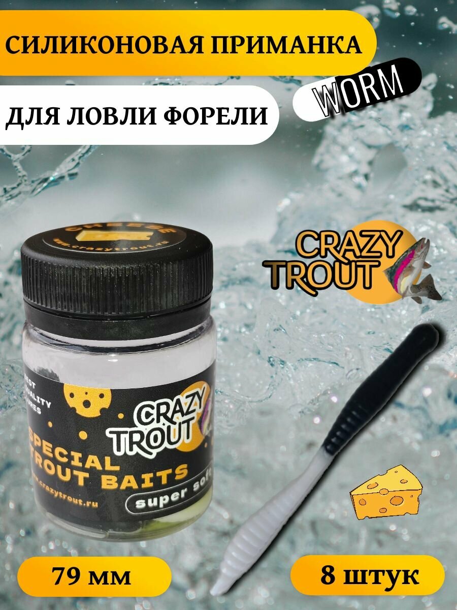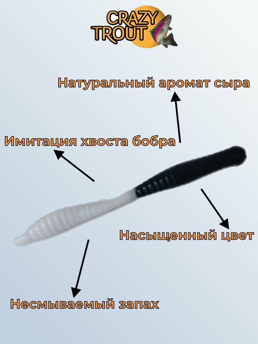 Отзывы на Приманка Crazy Trout Worm, силикон, съедобная, длина 79мм, вес 1,5г, чёрно-белый