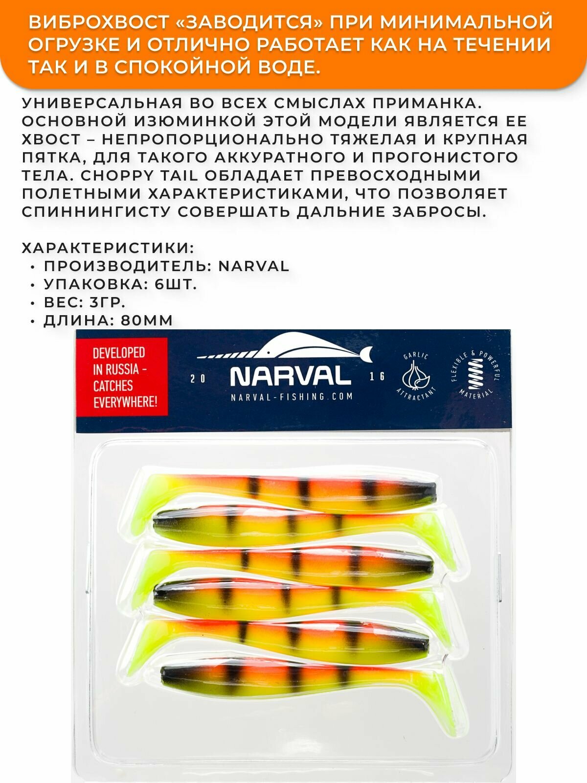 Приманка силиконовая Narval Choppy Tail 8cm #052-Orange Perch / Мягкая приманка для джига информация: