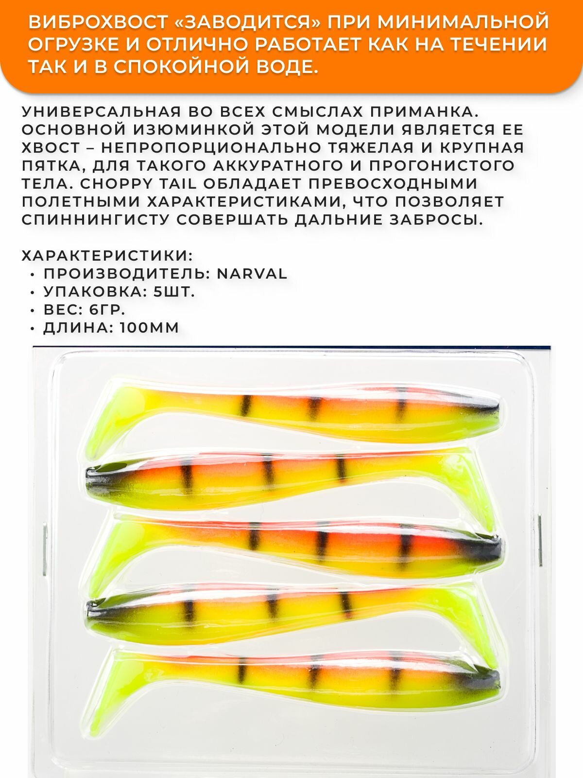 Приманка силиконовая Narval Choppy Tail 10cm #052-Orange Perch / Мягкая приманка для джига информация: