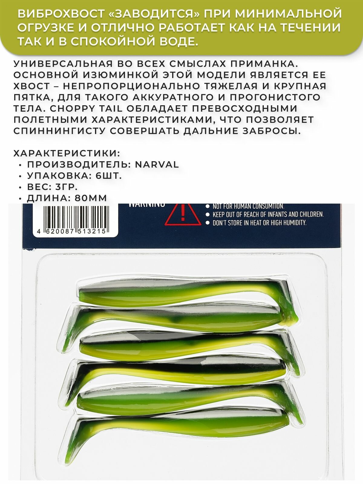 Приманка силиконовая Narval Choppy Tail 8cm #045-Black Lime / Мягкая приманка для джига информация: