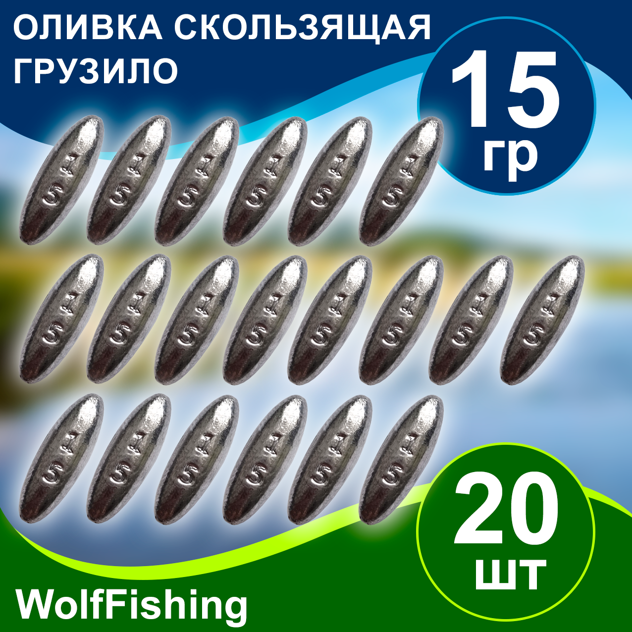 10 цен на Груз рыболовный "Оливка скользящая" вес 15гр 20шт, для жерлицы, для поплавка