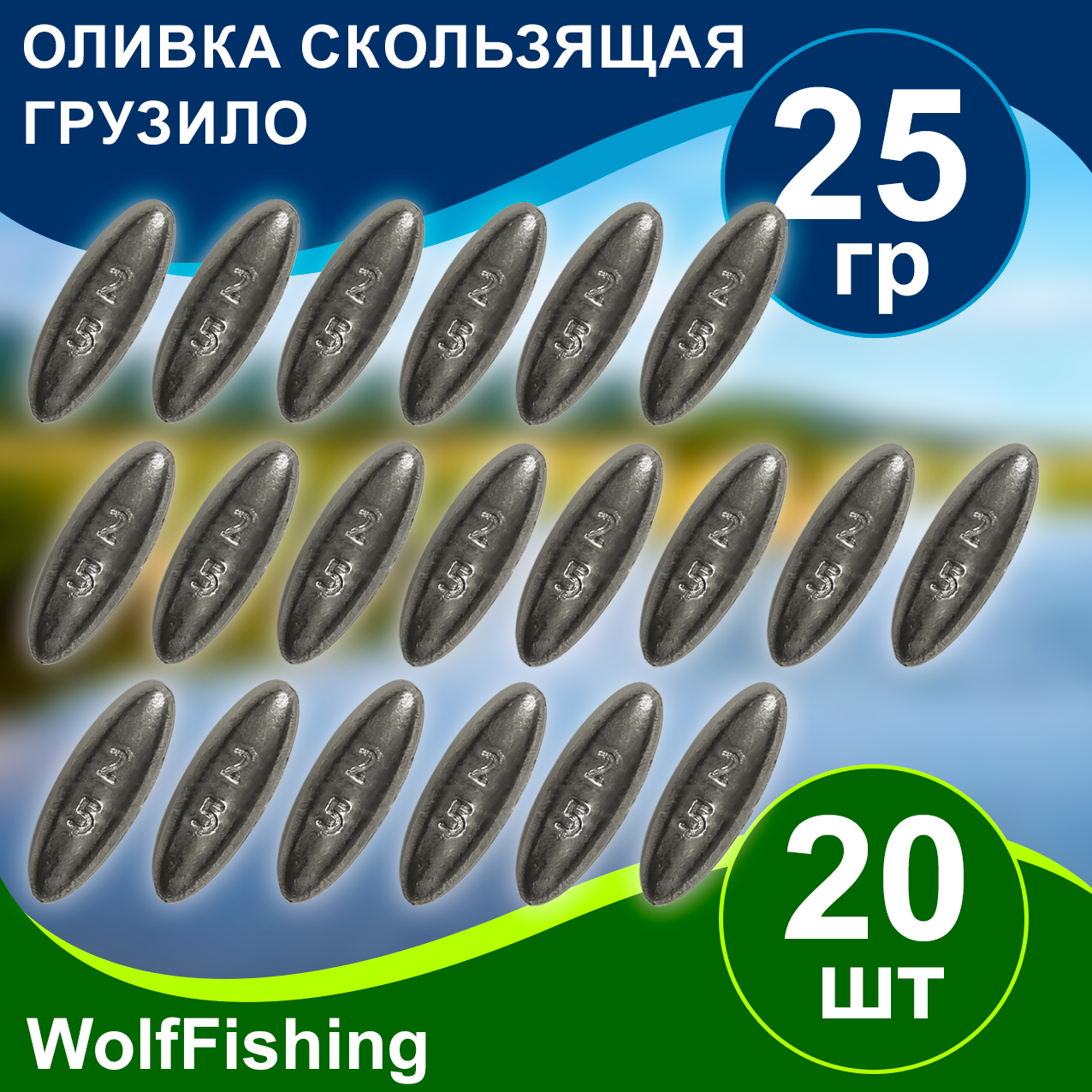 10 цен на Груз рыболовный "Оливка скользящая" вес 25гр 20шт, для жерлицы, для поплавка