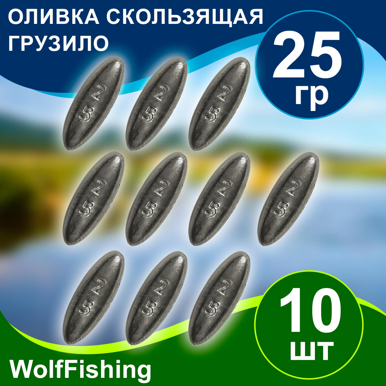 10 цен на Груз рыболовный "Оливка скользящая" вес 25гр 10шт, для жерлицы, для поплавка