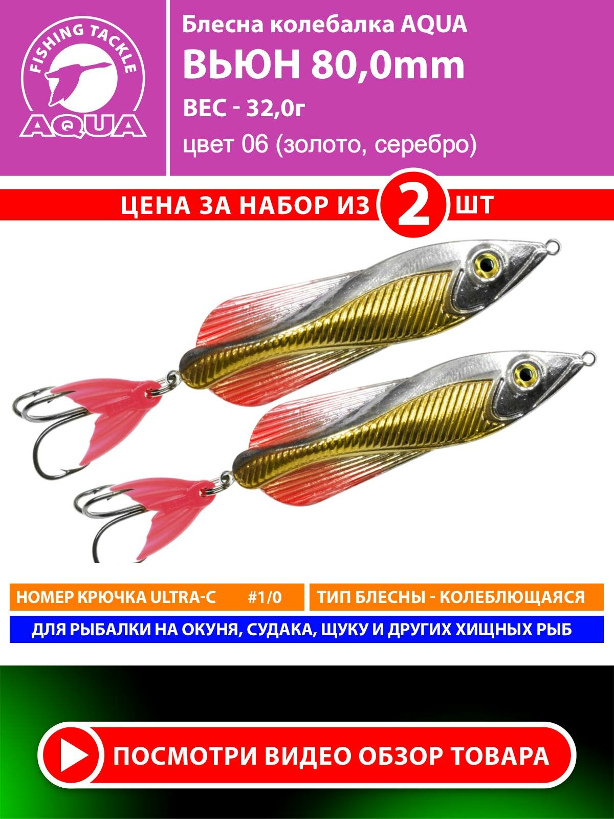 10 цен на Блесна колебалка AQUA вьюн 80,0mm, вес - 32,0g цвет 06 (золото, серебро) 2шт