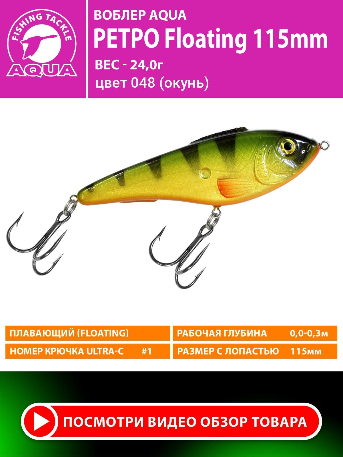Отзывы на Воблер для рыбалки плавающий AQUA Ретро 115mm 24g. Приманка джеркбейт на спиннинг, на щуку, судака, окуня цвет 048