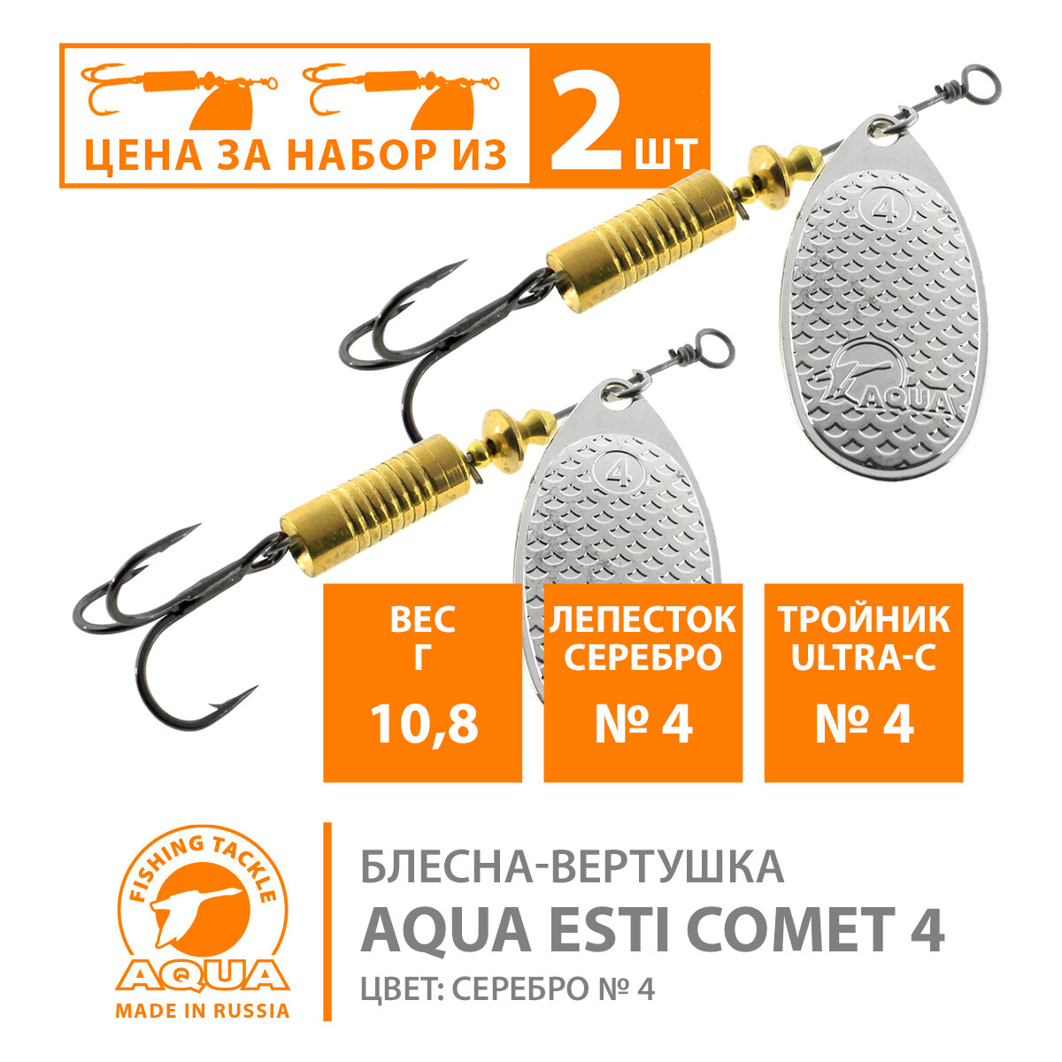 10 цен на Блесна для рыбалки AQUA Esti Comet-4 10,8g на окуня судака щуку форель лепесток №4 (серебро) 2шт