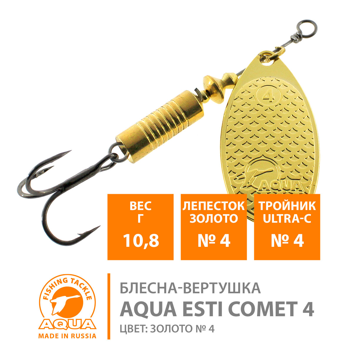 Блесна для рыбалки AQUA Esti Comet-4 10,8g на окуня судака щуку форель лепесток №4 (золото) информация: