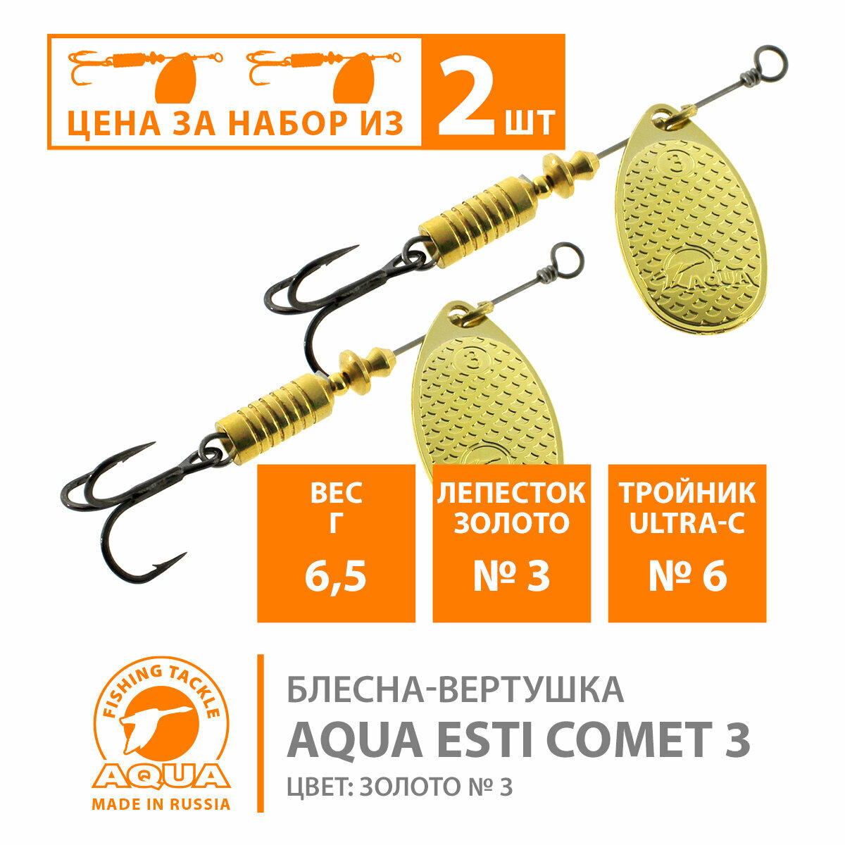 10 цен на Блесна для рыбалки AQUA Esti Comet-3 6,5g на окуня судака щуку форель лепесток №3 (золото) 2шт