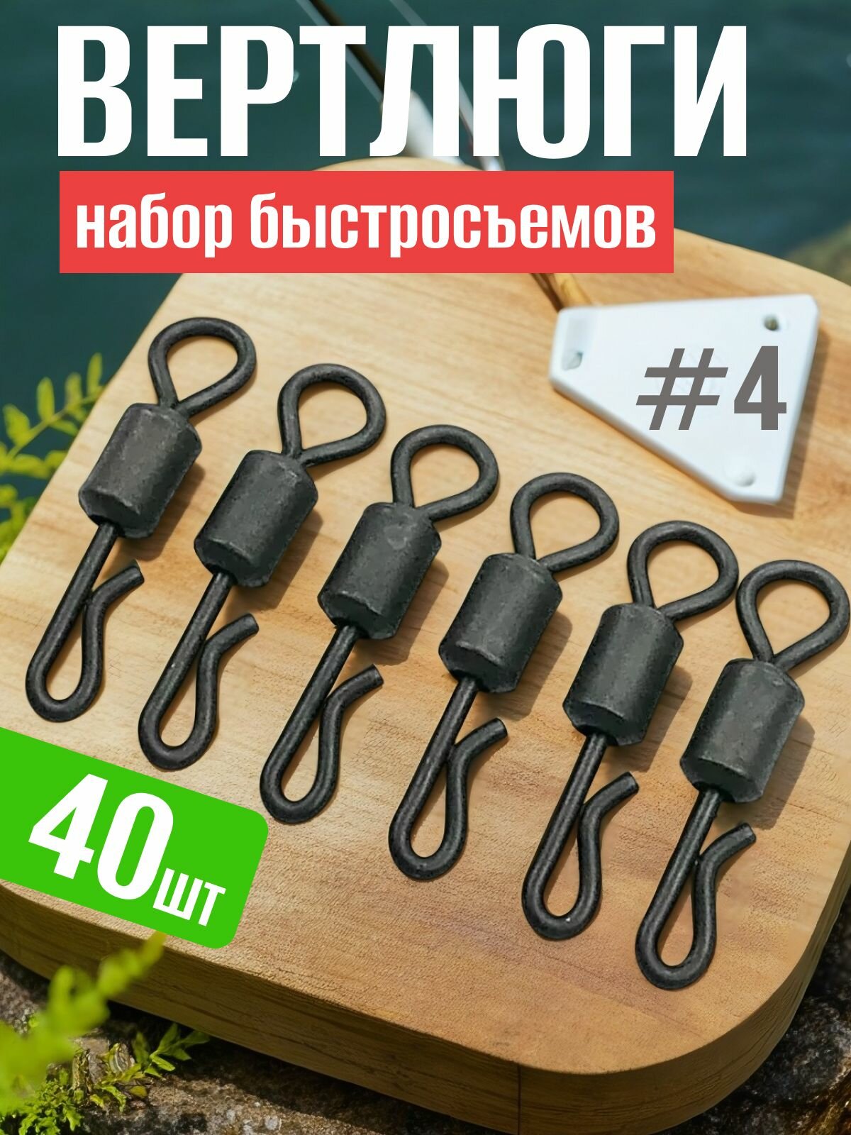 Вертлюг-быстросъём рыболовный карповый #4 / Коннектор с застёжкой 40 шт информация: