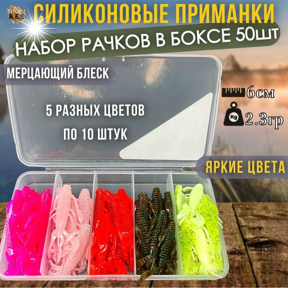 10 цен на Рачки (съедобные силиконовые приманки) 60мм 50шт в боксе, набор мягкой резины для рыбалки
