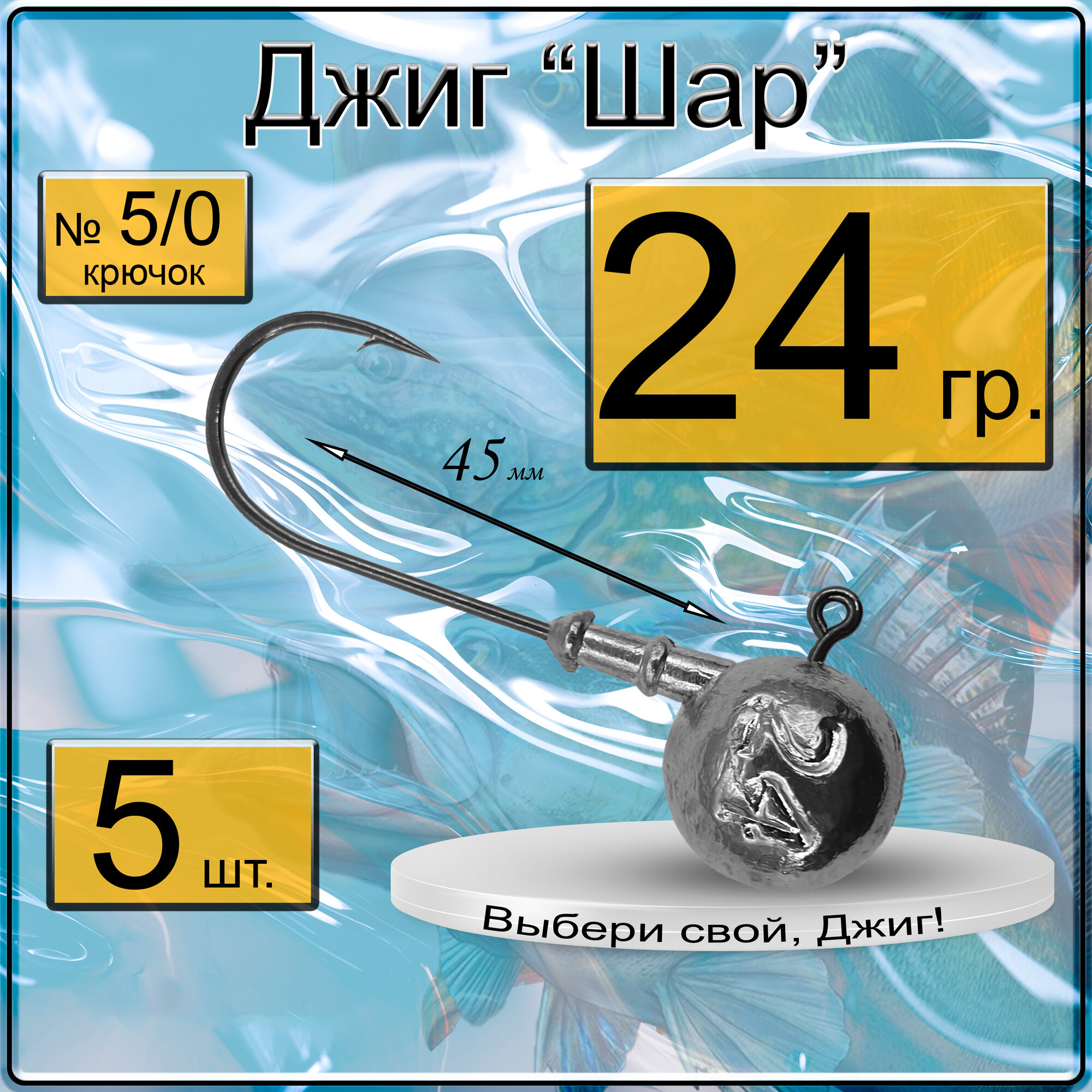 Джиг-головка "Шар" 24 гр. (крючок № 5/0), (в уп. 5 шт.) информация: