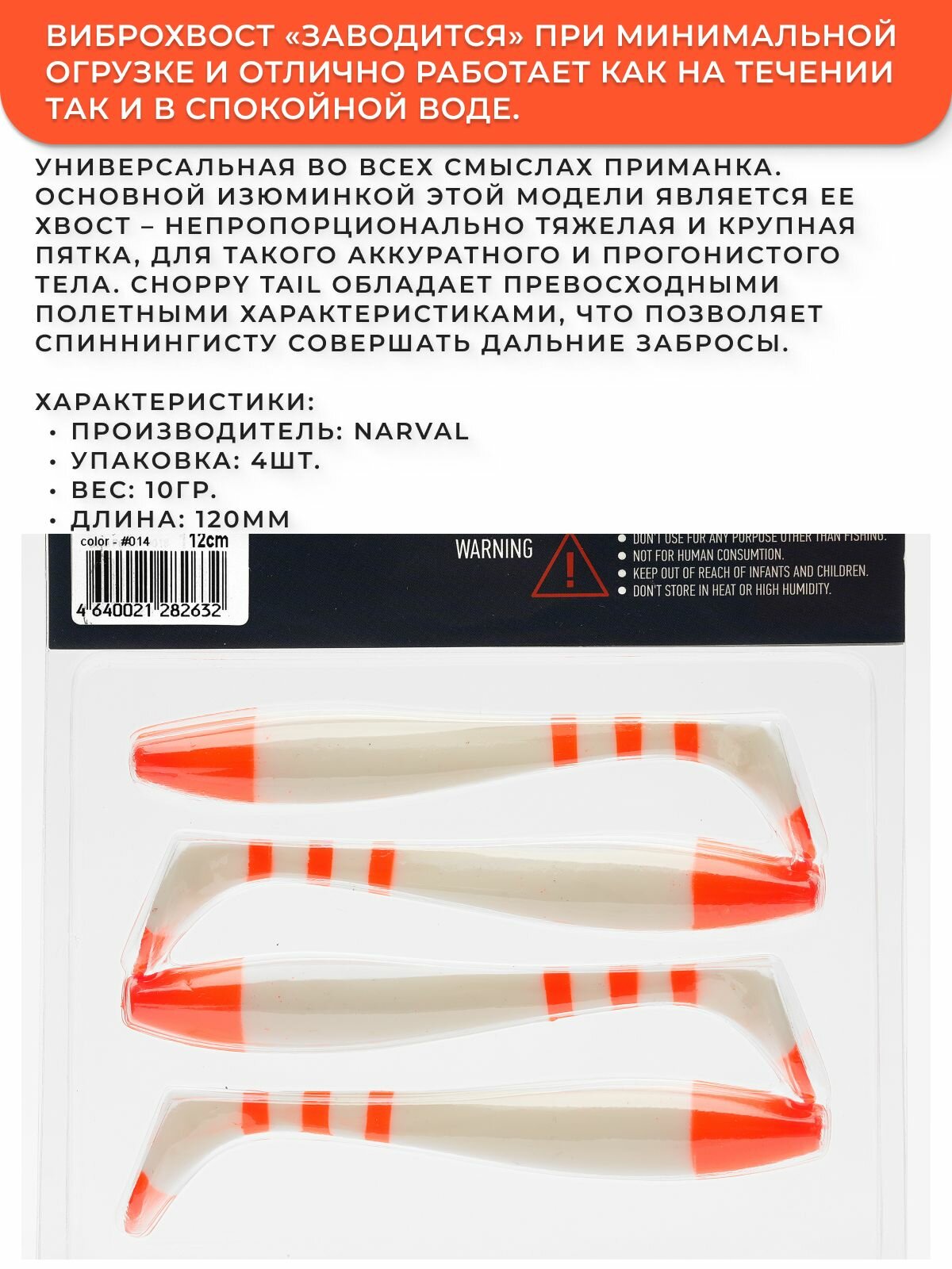 Виброхвосты Narval Choppy Tail 12см (4шт) цвет 032 812 ₽