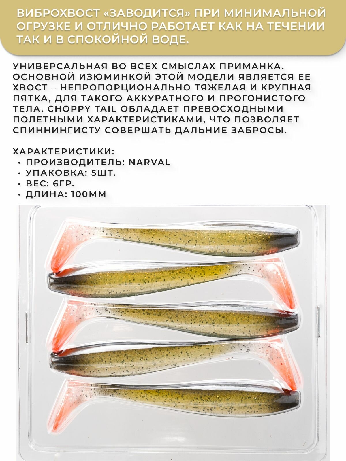 Виброхвосты Narval Choppy Tail 10см (5шт) цвет 054 819 ₽
