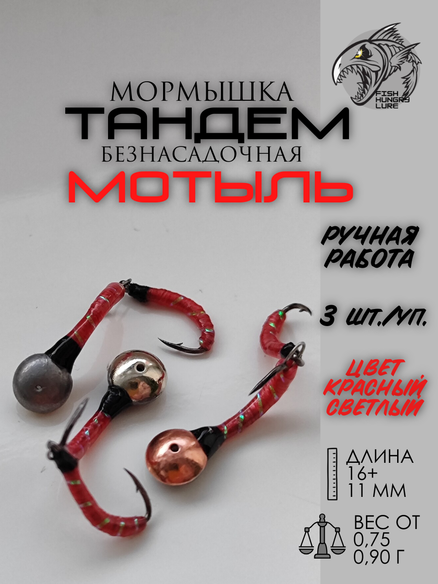 Отзывы на FISH HUNGRY LURE Мормышка безнасадочная Тандем-мотыль красный 3 шт.