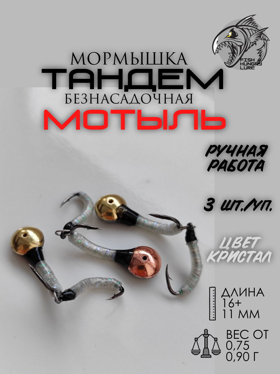 Отзывы на FISH HUNGRY LURE Мормышка безнасадочная Тандем-мотыль кристалл 3 шт.