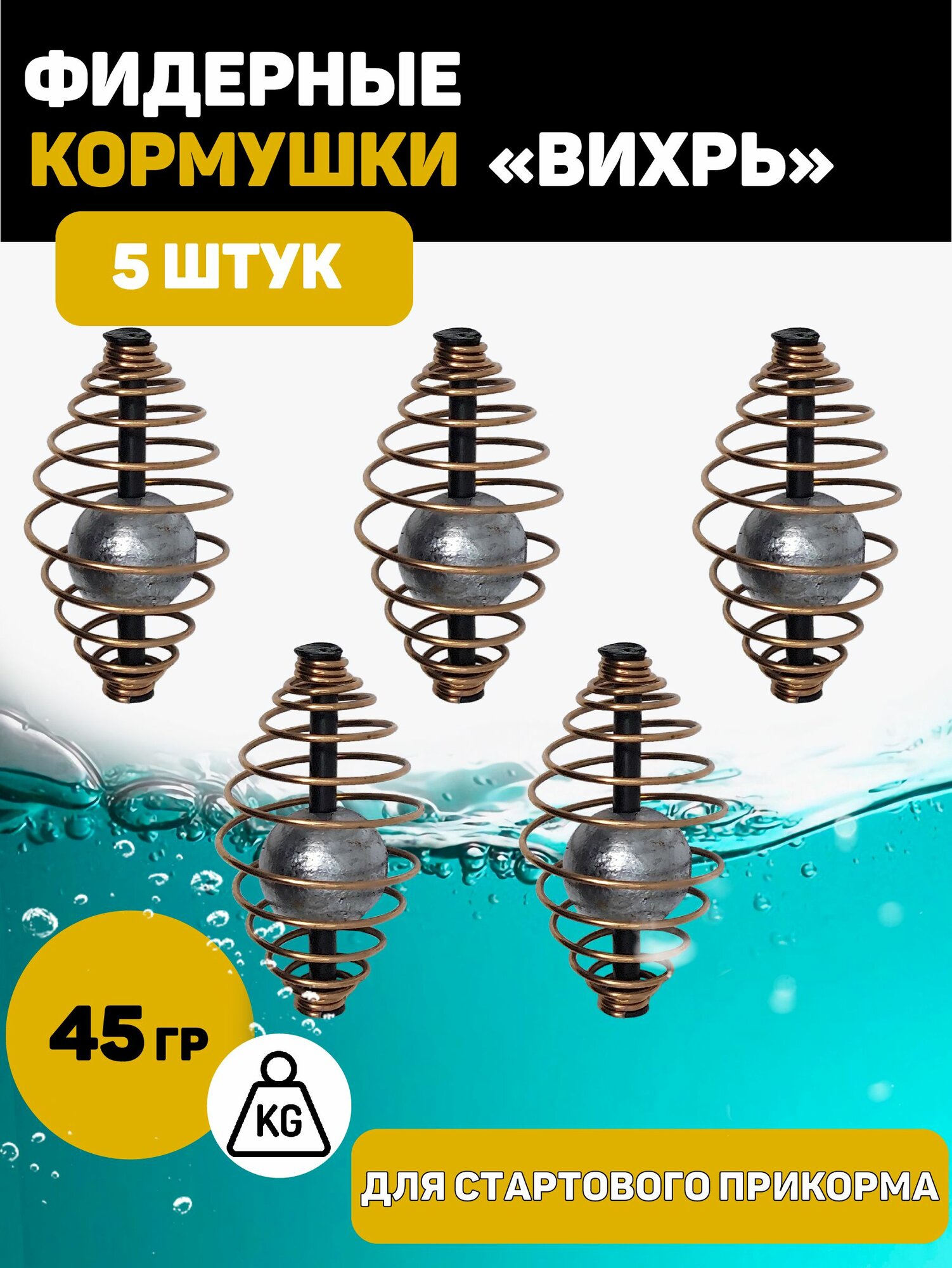 Кормушка рыболовная Вихрь для фидерной рыбалки. 45 грамм 5 штук информация: