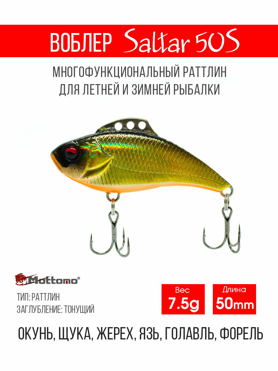 Мы выбрали 10 лучших цен на Воблер для рыбалки Mottomo Saltar 50S 7,5g, раттлин тонущий для спиннинга. Приманка на щуку, форель, судака Dark Gold. Перед тем как купить Воблер для рыбалки Mottomo Saltar 50S 7,5g, раттлин тонущий для спиннинга. Приманка на щуку, форель, судака Dark Gold посмотрите найденные предложения из Яндекс Маркета и других сайтов на основе XML фидов.