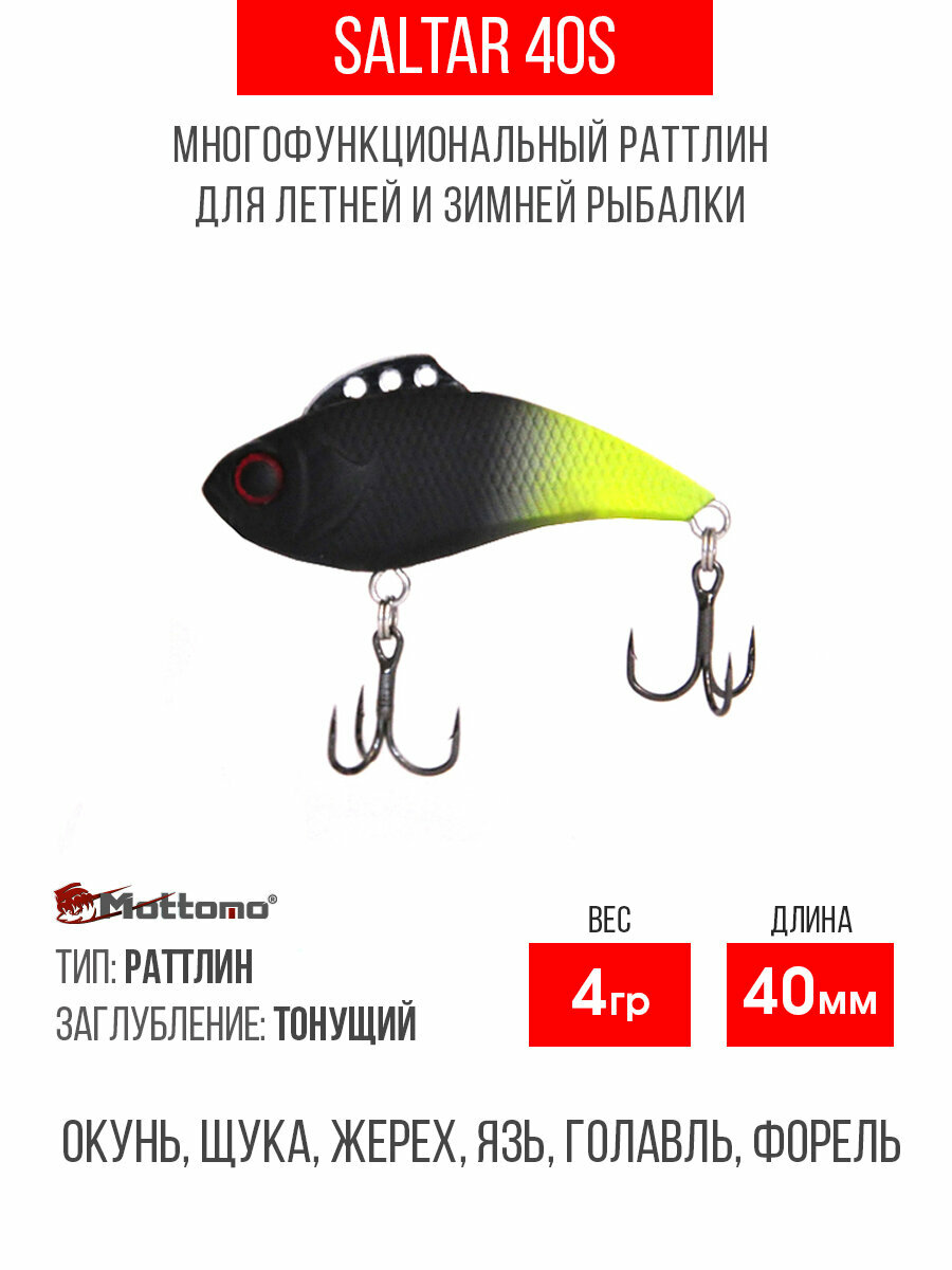 Воблер для рыбалки Mottomo Saltar 40S 4g, раттлин тонущий для спиннинга, троллинга. Приманка виб на щуку Black Lime информация: