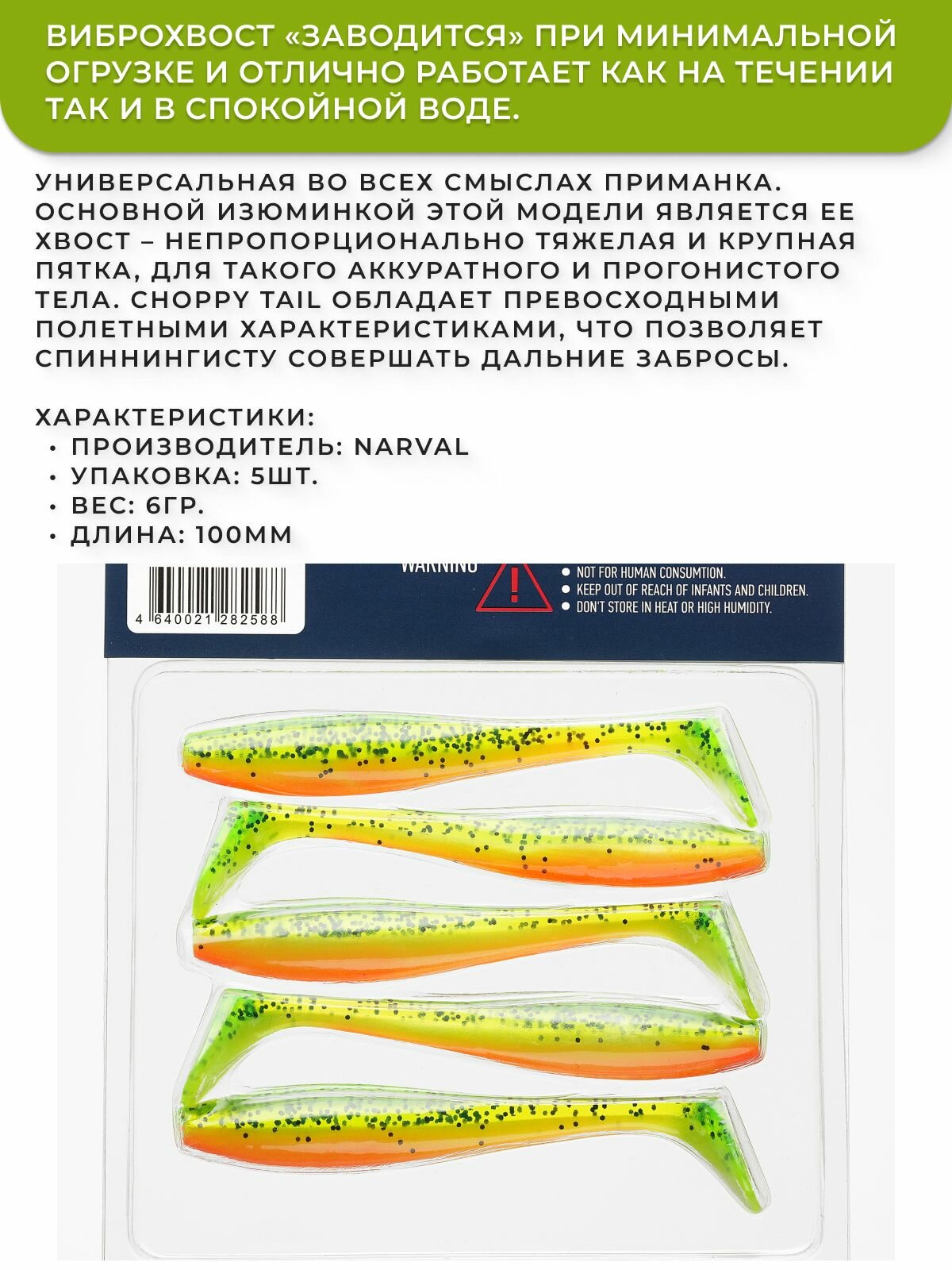 10 цен на Приманка силиконовая Narval Choppy Tail 10cm #015-Pepper/Lemon / Мягкая приманка для джига