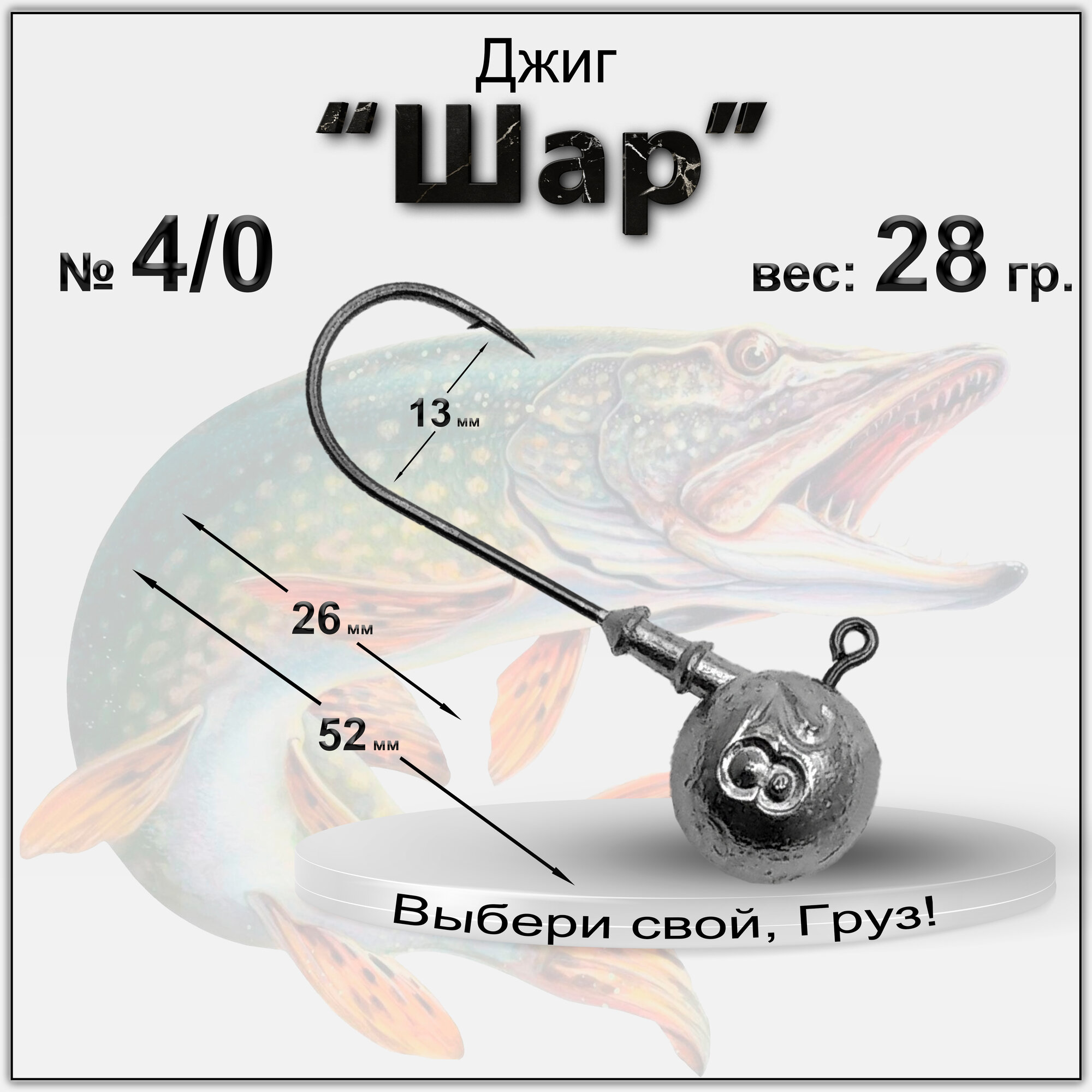 10 цен на Джиг-головка "Шар" 28 гр. (крючок № 4/0), (в уп. 5 шт.)