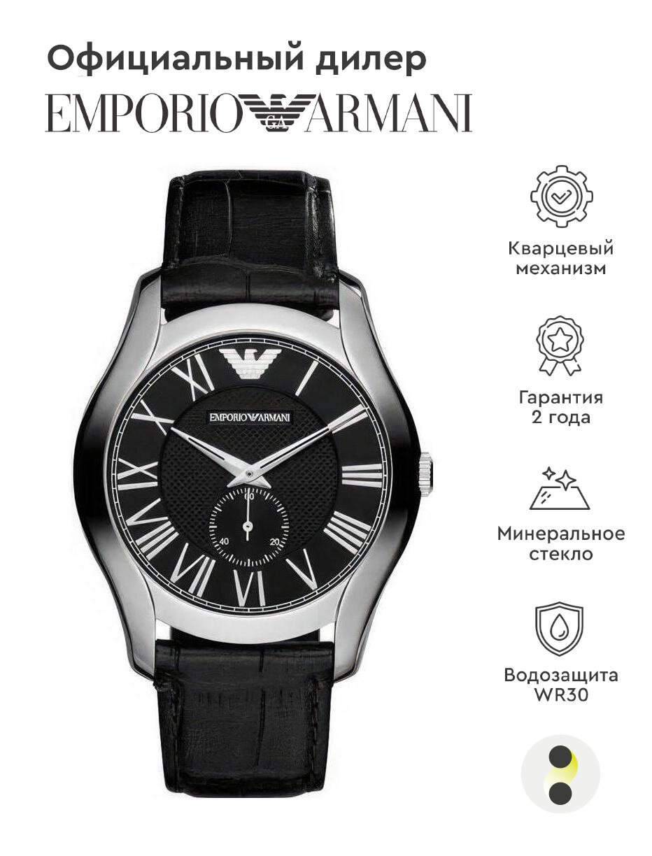 Часы наручные женские Emporio Armani AR11598 кварцевые на кожаном браслете черного цвета с минеральным стеклом водонепроницаемостью WR50 (5 атм)