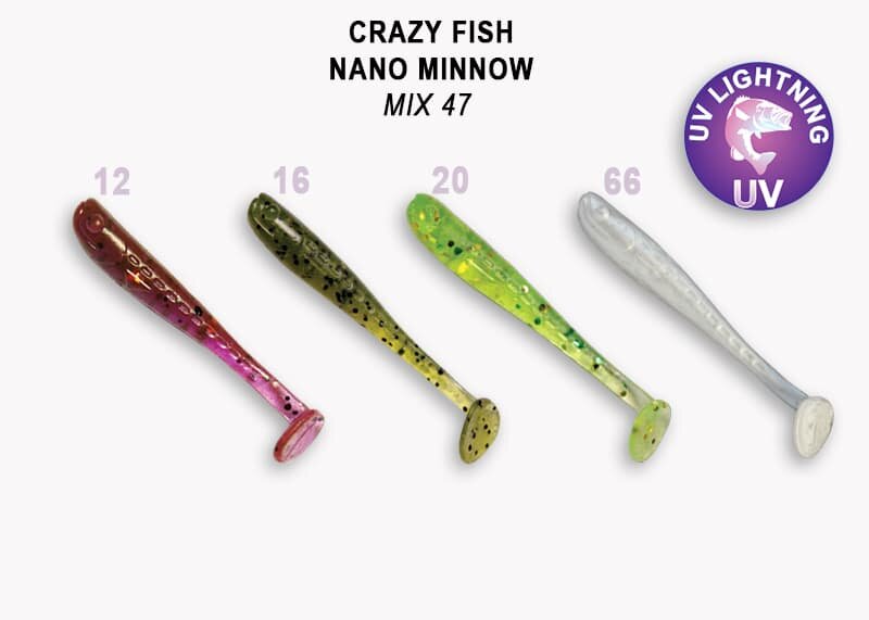 Силиконовая приманка мягкая съедобная Crazy Fish Nano Minnow 1.6" 40.64 мм MIX 47 8 шт. 365 ₽