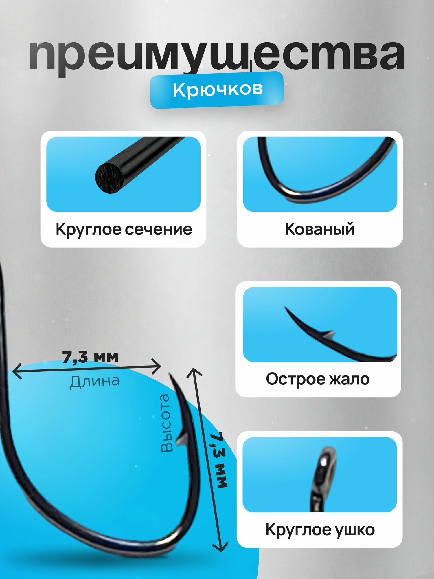 10 цен на Крючки рыболовные набор 10 шт FUGU №4 тонкий с ушком, Aji, Черный никель
