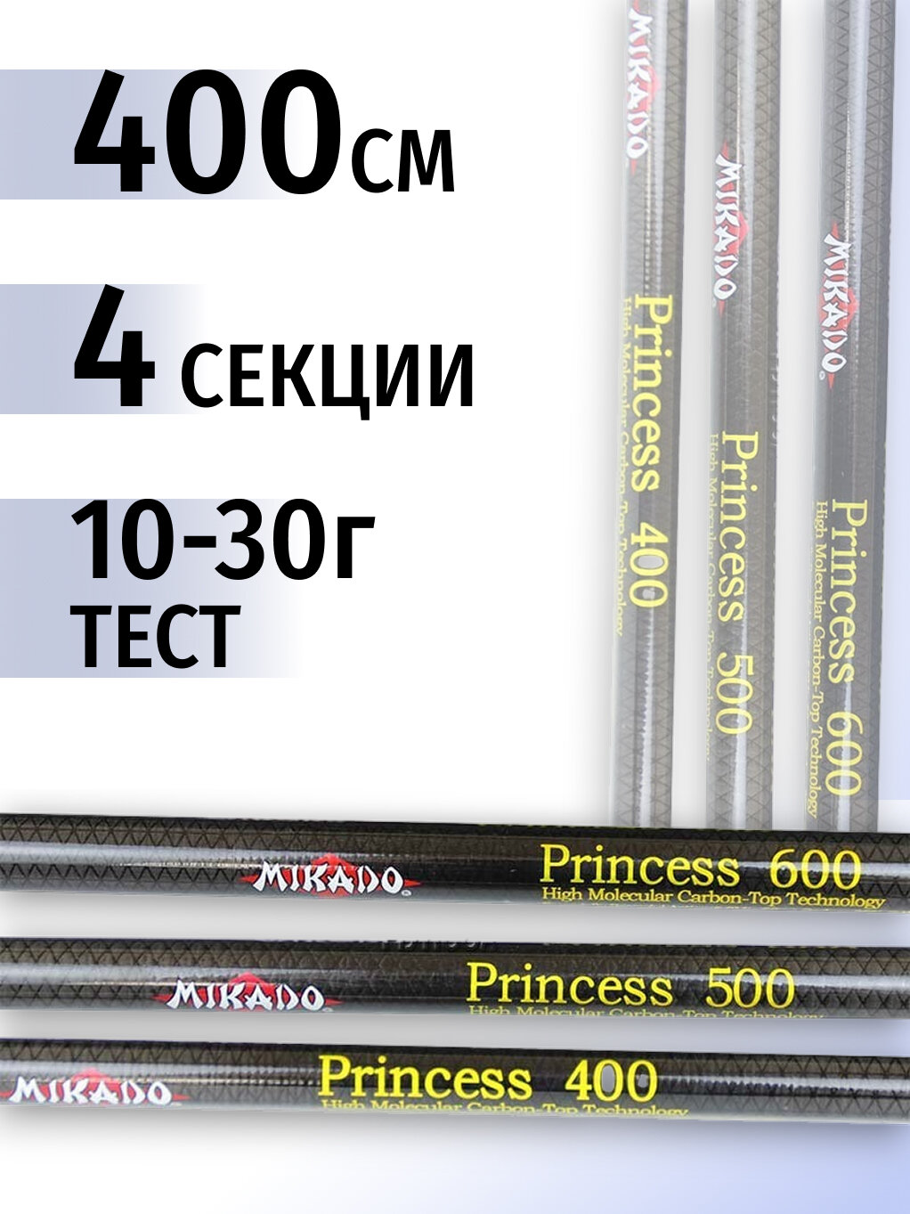 10 цен на Удилище Mikado Princess 400, без колец, маховое, длина 4 м, тест 10-30г