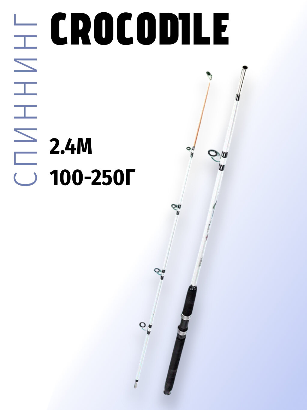 10 цен на Спиннинг "Crocodile", 2.4 м, штекерный, карбон, 2 секции, тест 100-250г, белый