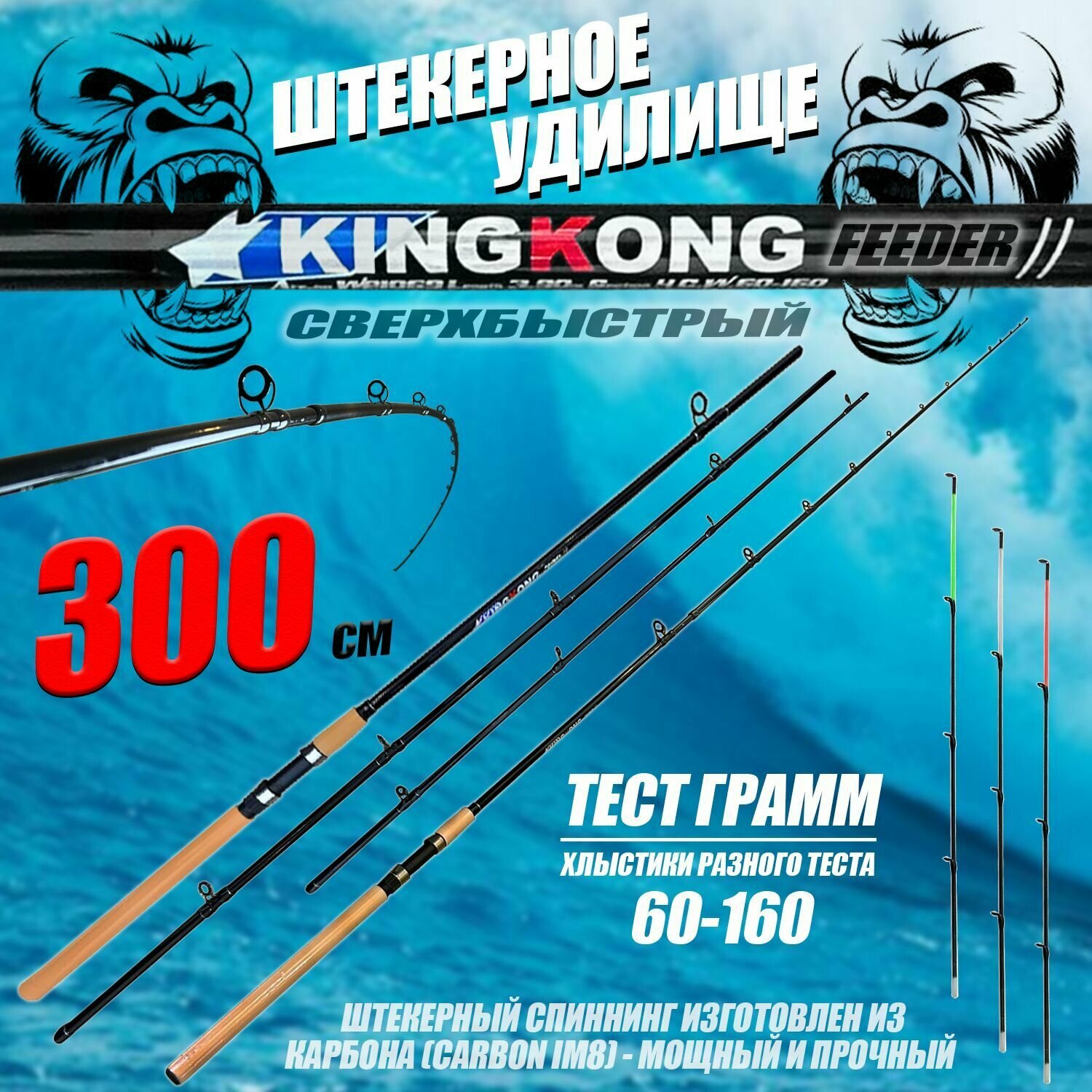Фидерное удилище для рыбалки 300 см С тремя хлыстиками "KING KONG" Штекерное Тест: от 60 до 120 г. Сверхбыстрый информация:
