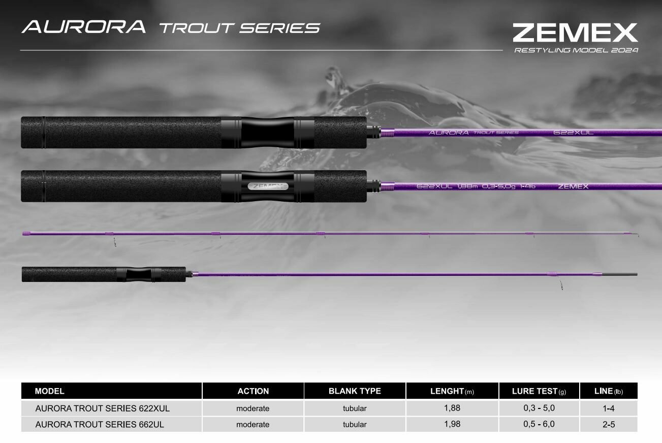Спиннинг для ловли форели ZEMEX 24 AURORA TROUT SERIES 622XUL 188 cm / 0.3-5 g информация:
