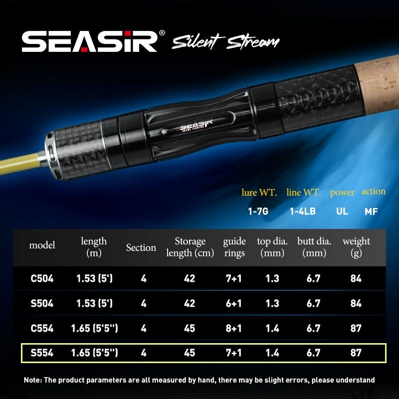 Спиннинг ультралайт SEASIR Silent Stream S554, 1,65М, 4 секции, action: Medium Fast, power: UL, 1-7гр информация: