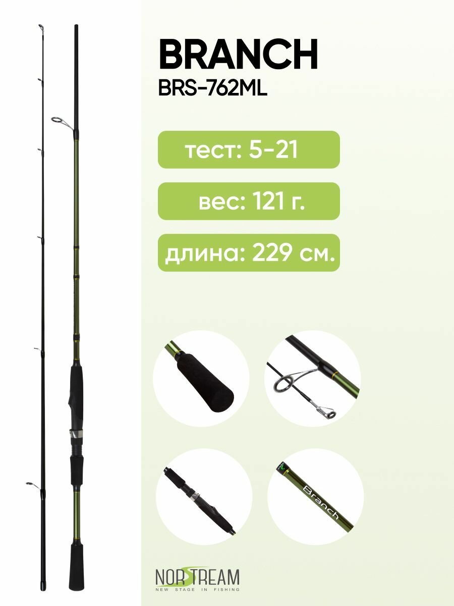 10 цен на Спиннинг универсальный на /щуку/окуня/судака/хищника Norstream Branch BRS-762ML тест 5 - 21 г, 229см