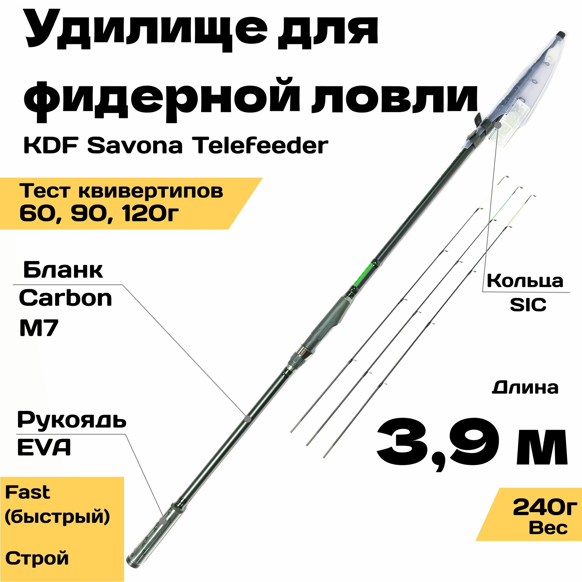 Отзывы на Телескопическое удилище для фидерной ловли KDF Savona TeleFeeder 3,9 м тест до 120 гр