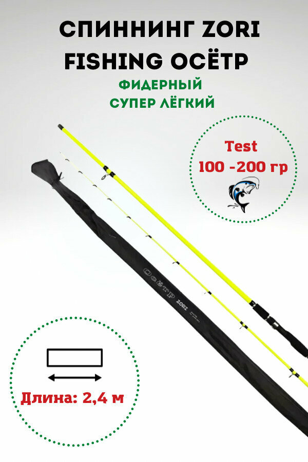 Удилище фидерное / удочка для рыбалки Zori осётр тест 100-200g 2,4м информация: