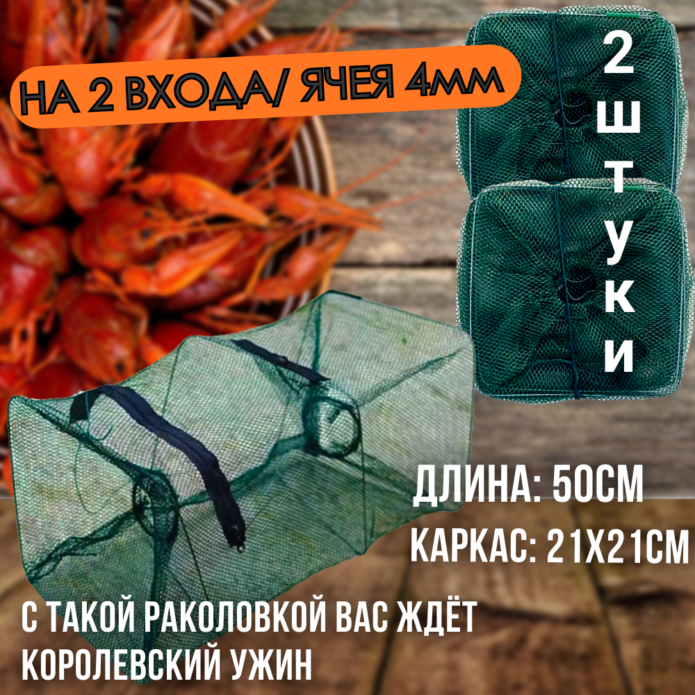 10 цен на Набор из 2-х раколовок 2входа длинной 50см, садок, верша рыболовная