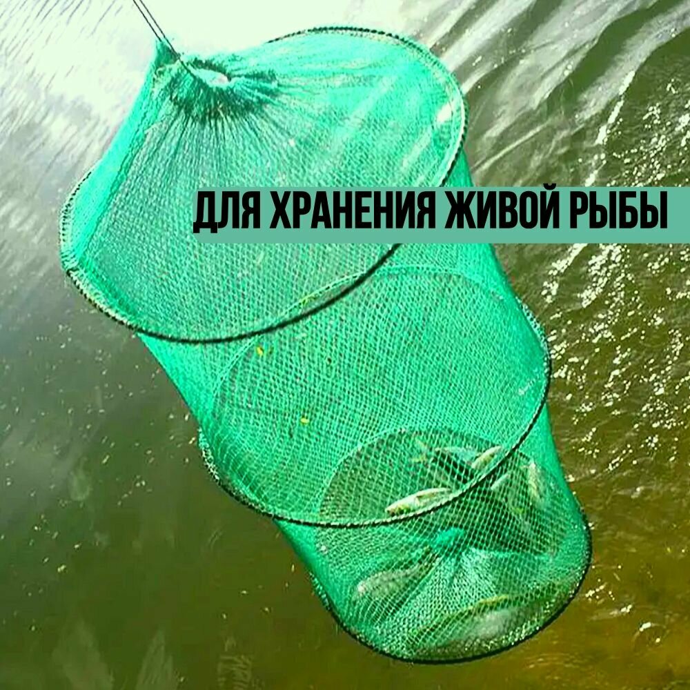 Садок рыболовный 2секции нейлон 50см D30cм / Садок для хранения рыбы информация: